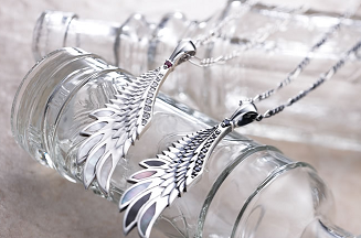 SAINTS ブラックウィングペアネックレス SSP9-117bk-117wtメンズにはサファイヤ、キュービックジルコニア 、ブラックシェルを・・・レディースにはルビー、キュービックジルコニア 、ホワイトシェルをあしらった斬新なデザインのブラックウィングネックレス。天使の象徴とされる翼がふたりの幸せを運んでくれると祈りを込めて・・・。繊細な翼を見事に表現し、根元に添えられた天然石がアクセントになるインパクトに残るアイテム。他にもたくさんの新作があります♪▼▼▼